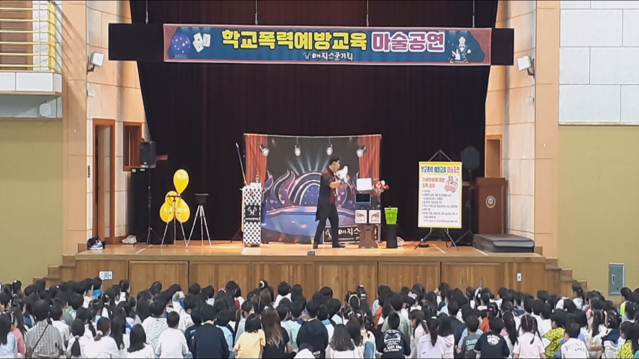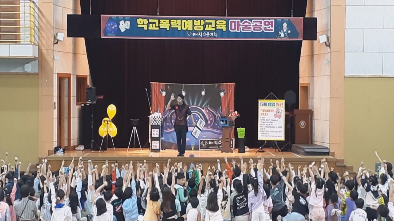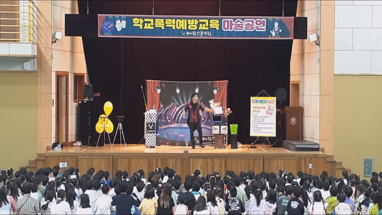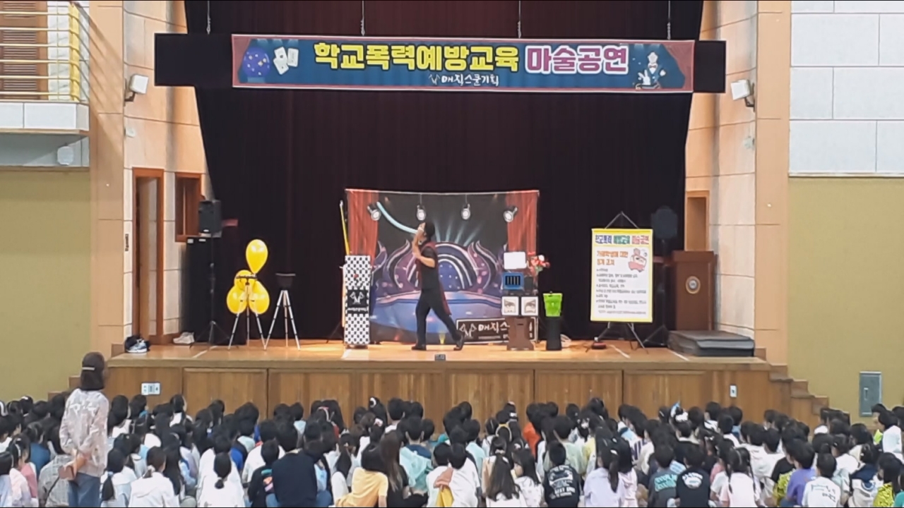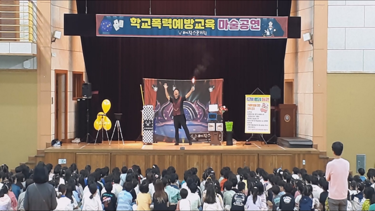 오늘 아침, 대구광역시 초등학교, 중학교, 고등학교 강당에서 특별한 학교폭력 예방 교육 마술 공연이 열렸습니다. 전교생을 대상으로 진행된 이번 행사는 학생들과 교사 모두에게 큰 호응을 얻으며 성공적으로 마무리되었습니다.