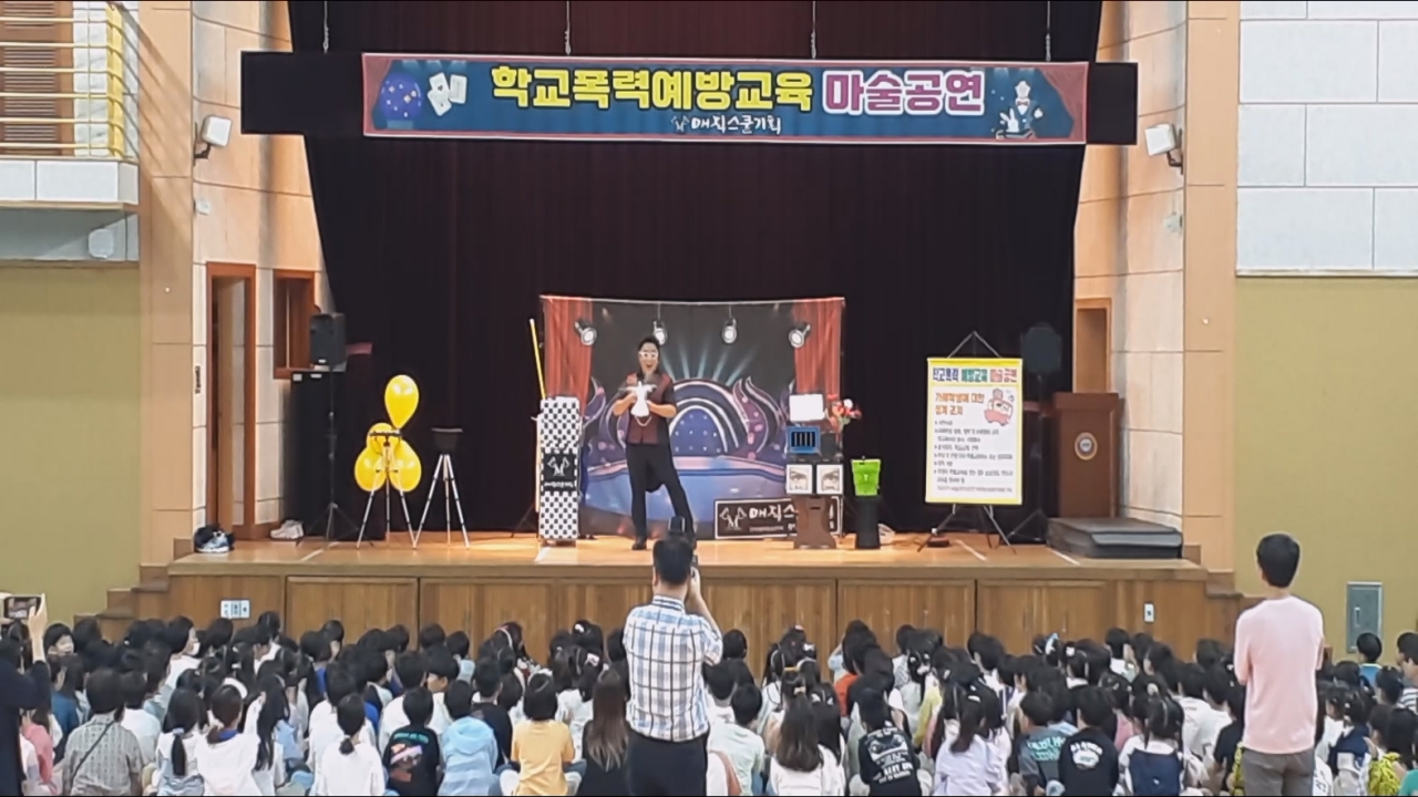 자~ 그럼 대구광역시 초등학교, 중학교, 고등학교에서 진행한 학교폭력예방 교육마술공연을 감상하시겠습니다.