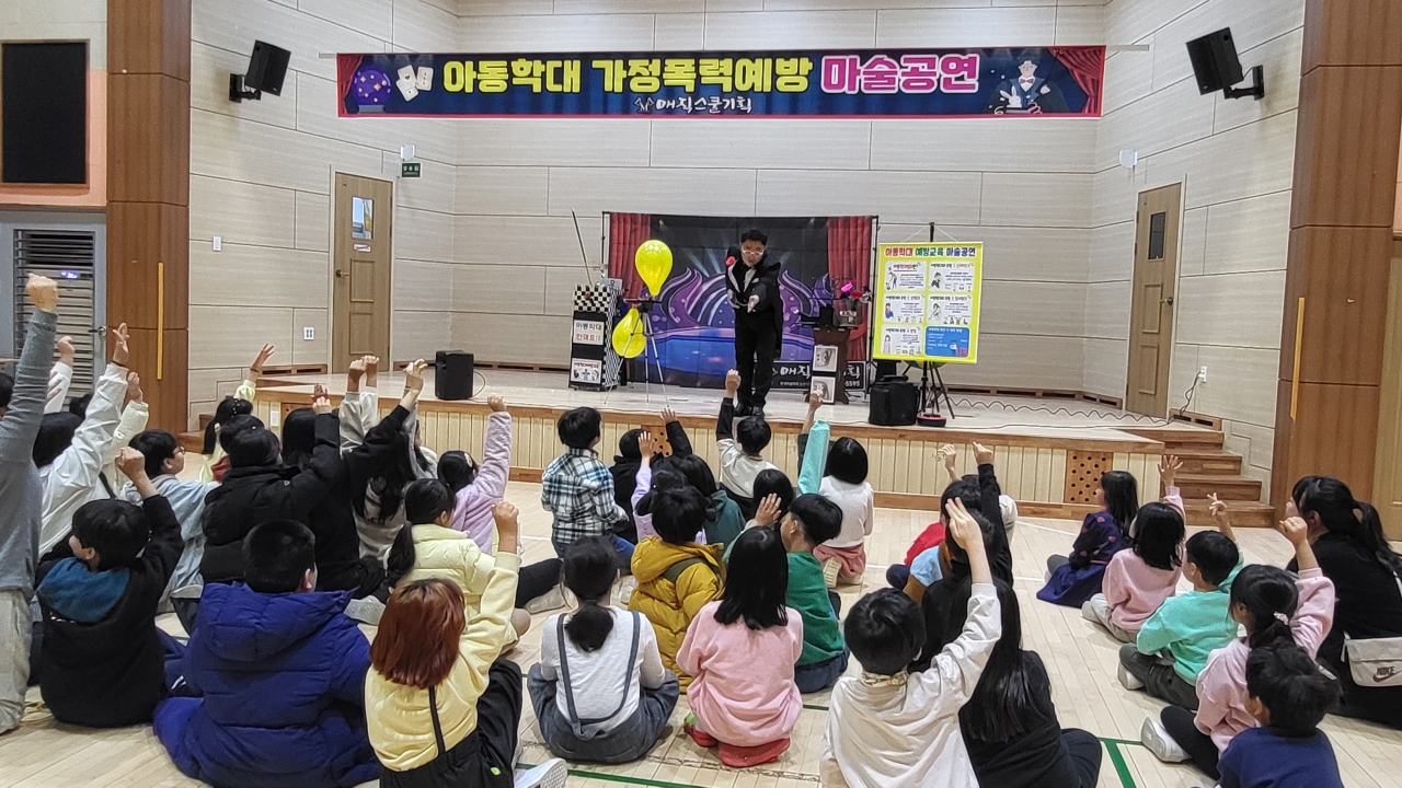 오늘 충청남도 초등학교, 중학교, 고등학교 강당에서는 특별한 아동학대예방 교육마술공연이 열렸습니다. 전교생을 대상으로 한 이번 행사는 학생들과 교사 모두에게 큰 호응을 받으며 성공적으로 마무리되었습니다.