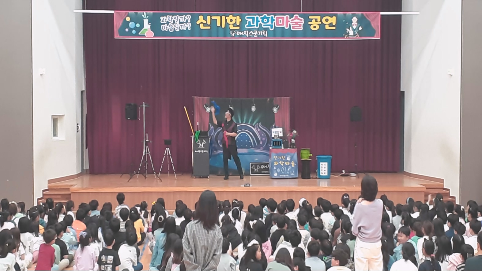 저희 매직스쿨기획은 전국출장공연 전문업체로 50명미만의 적은 인원의 학교부터 1000명이 넘는 학교도 공연이 가능한 프로그램과 장비를 모두 갖추고 있습니다