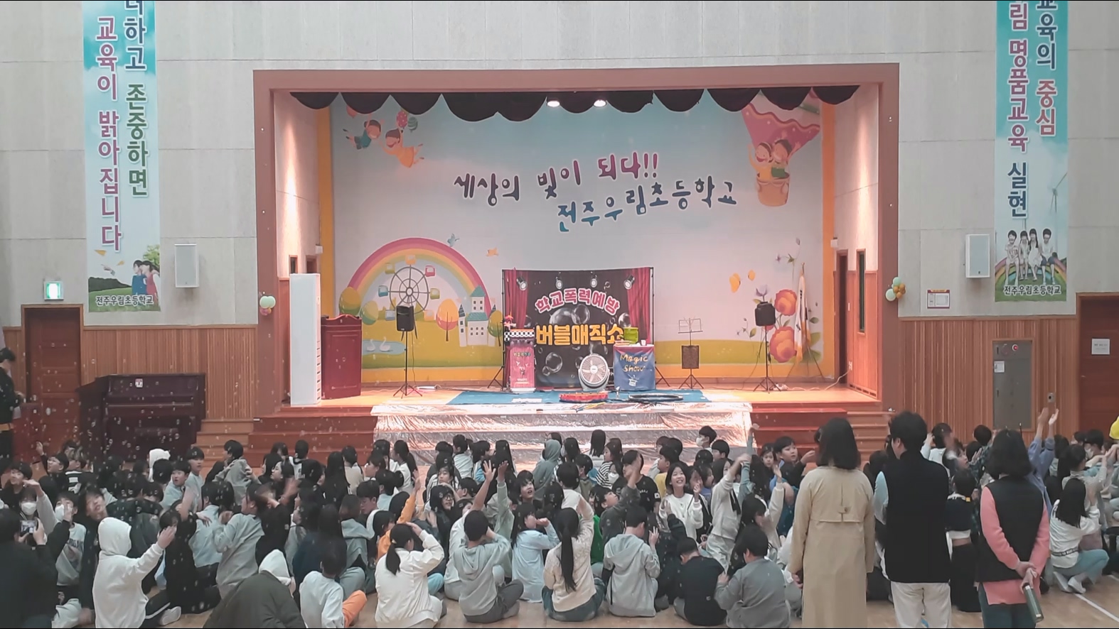 공연이 끝난 후, 학생들과 선생님들은 모두 만족스러운 표정을 지었습니다. 교육적인 내용과 재미를 모두 갖춘 이번 학교폭력예방 버블매직쇼 공연은 학생들에게 큰 의미를 남긴 특별한 시간이었습니다.