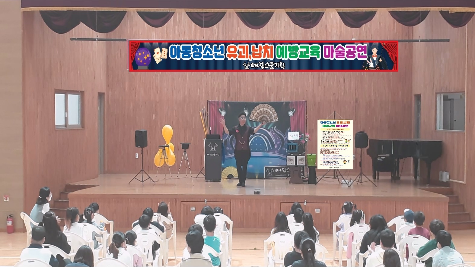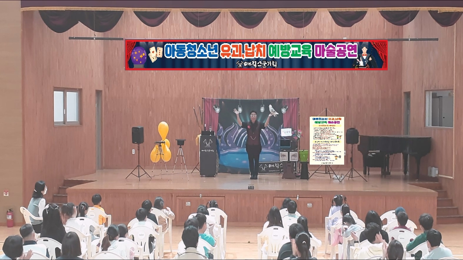 오늘 광주광역시 00초등학교 강당에서는 특별한 유괴,납치 예방교육 마술공연이 열렸습니다. 전교생을 대상으로 한 이번 행사는 학생들과 교사 모두에게 큰 호응을 받으며 성공적으로 마무리되었습니다.