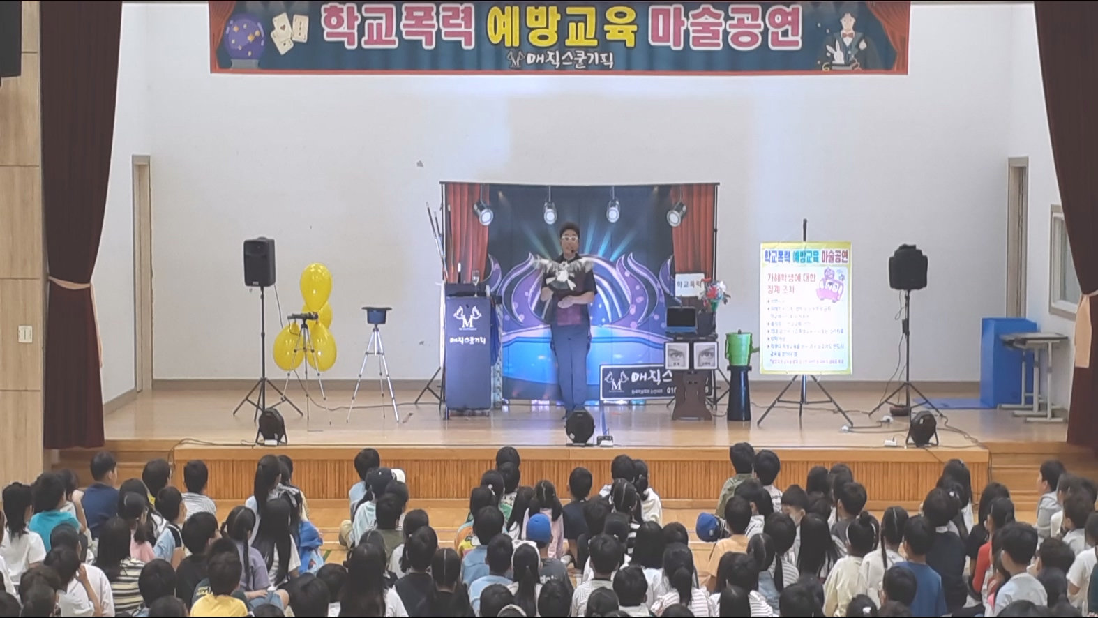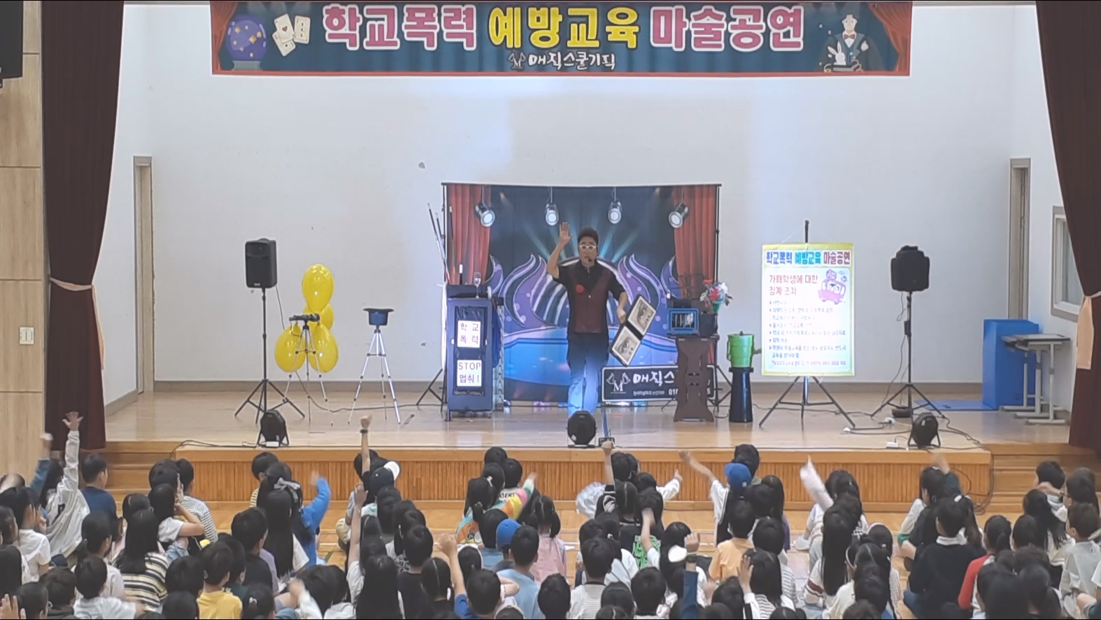 오늘 아침, 경상남도 00초등학교 강당에서 특별한 학교폭력 예방 교육 마술 공연이 열렸습니다. 전교생을 대상으로 진행된 이번 행사는 학생들과 교사 모두에게 큰 호응을 얻으며 성공적으로 마무리되었습니다.